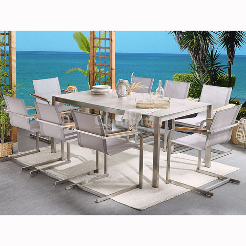 Tavolo moderno attraente e sedia produttore diretto giardino in acciaio inox sedia da pranzo all'aperto mobili SS304