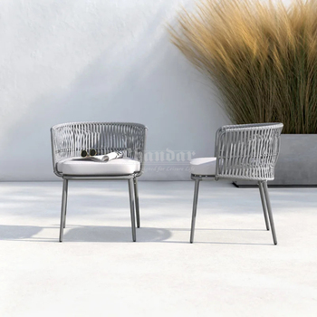 เก้าอี้รับประทานอาหารทำจากเชือกทำจากอลูมิเนียมมีเบาะรองนั่งเฟอร์นิเจอร์สวนกลางแจ้งโรงแรม